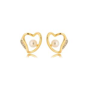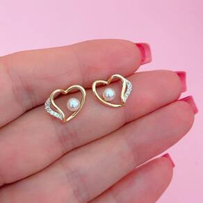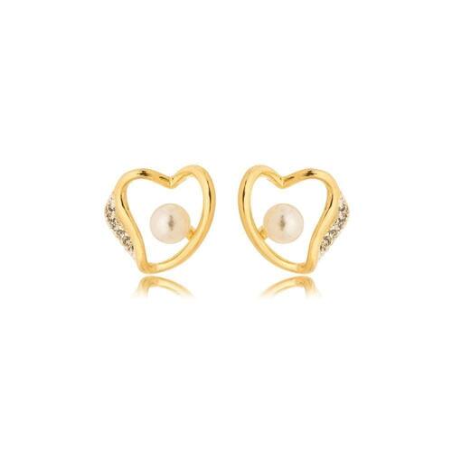 Brinco Coração Com Perola Sintética Banhado A Ouro 18k Brinco Coração com Perola Sintética Banhado a Ouro 18k 1cm - Brinco Coração com Perola Sintética Banhado a Ouro 18k Brinco Coração com Perola Sintética Banhados Ouro 18k Brinco delicado e feminino, banhado a ouro 18k, em formato de coração, com detalhes em zircônias cravejadas de um lado e uma pérola sintética centralizada no interior do coração. Essa semijoia é perfeita para ocasiões especiais ou para adicionar um toque elegante ao dia a dia.