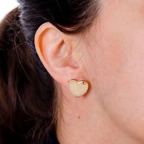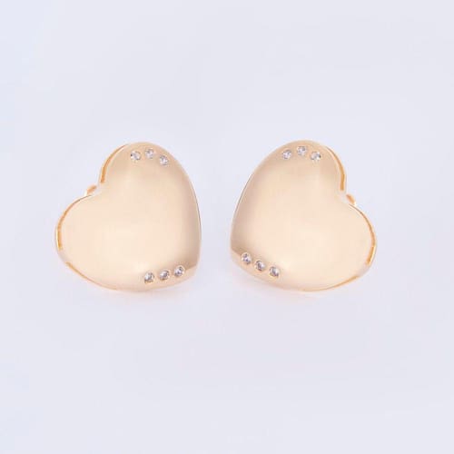 Um par de brincos em formato de coração, semijoia, banhado a ouro com detalhes em zircônia. É luxuoso que te deixa em destaque em qualquer situação.