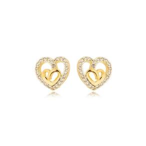 Brinco Coração Cravejado Banhado A Ouro 18k