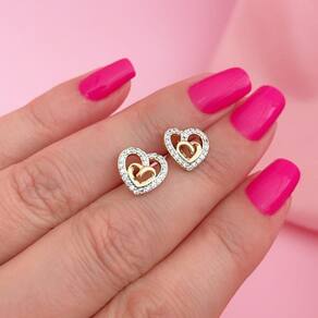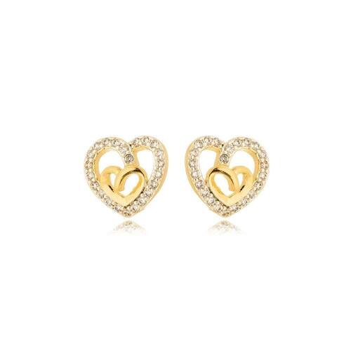 Brinco Coração cravejado Banhado a Ouro 18k 0,9cm - Brinco Coração cravejado Banhado a Ouro 18k