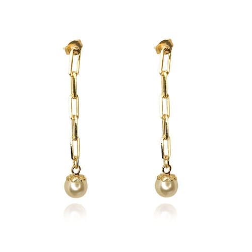 Esse brinco é composto por uma corrente com uma perola na ponta.