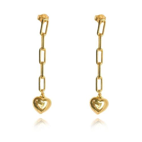 Esse brinco é composto por uma corrente com um lindo coração folheado em ouro 18k na ponta.