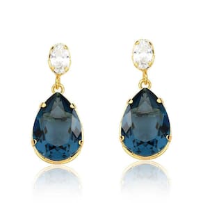 O Brinco Crystal Drop Blue, trás a elegância do Cristal Gota Azul Indigo e a Pureza e Alegria simbolizados nos cristais que acompanham a corrente. Uma composição belíssima com Revestimento em Ouro. Confira também em nosso catálogo o Colar Drop Blue Revestido em Ouro (VLVL148) e garanta um belo conjunto!