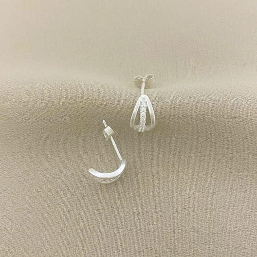 Brinco Curvo com detalhes de Zircônia em Prata 925