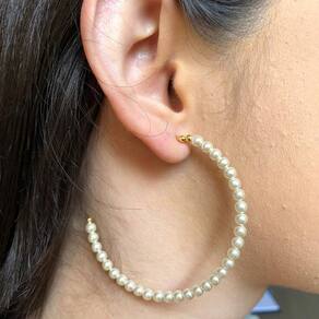 Esse brinco de argola é lindo, seu tamanho grande com pérolas dá um charme a mais para a peça.