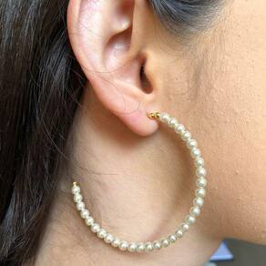 Um Brinco de Argola lindo de Tamanho Grande com Pérolas é um acessório que está super em alta.