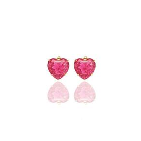 Brinco De Coração Pedra Fusion Pink Folheado A Ouro