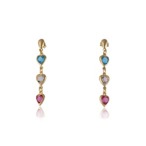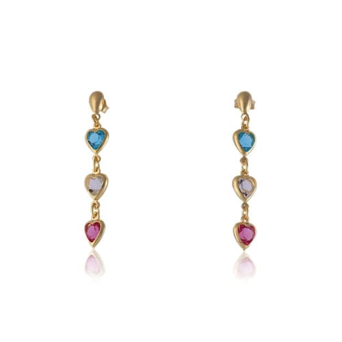 Brinco de corações com pedras coloridas folheado em ouro 18k Para as mulheres que amam acessórios compostos por pedras coloridas, esse brinco trabalhado é a escolha ideal para você. Evidência sua elegância e exclusividade por onde quer que passe, fazendo com que sua presença seja marcante e notável. Um acessório folheado em ouro 18k e com um desgin construído pelos melhores profissionais que fazem parte do mundo da moda. Um acessório perfeito para você esse acessório é antialérgico Diâmetro: 4,6cm.: 6 meses. Ficha técnica - cor: dourado Ean: 7898707881113