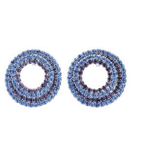 Brinco De Cristais Redondo Azul Folheado A Metálico