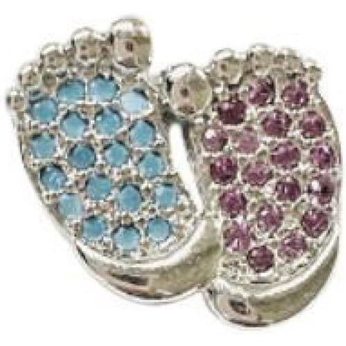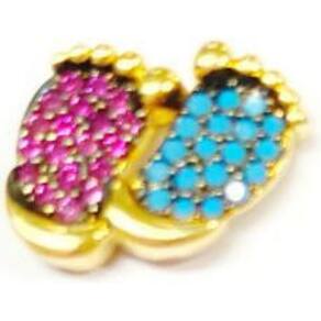 Brinco pezinho com zircônias azul e rosa folheada ouro