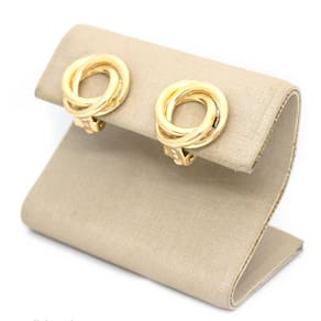 Brinco Rios - Mucuri Dourado BP brinco base fixa de metal banhado e entrelaçado Clipe : Ômega Francês Tamanho: 1,50 x 1,50 cm Peso: 6,10 grama Produto produzido no BRASIL Marca: Não Informado