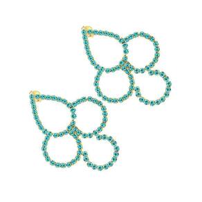 Brinco De Strass Azul Turquesa Folheado A Ouro 18K