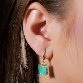 Brinco Dourado Argolinha Pedra Retangular Verde