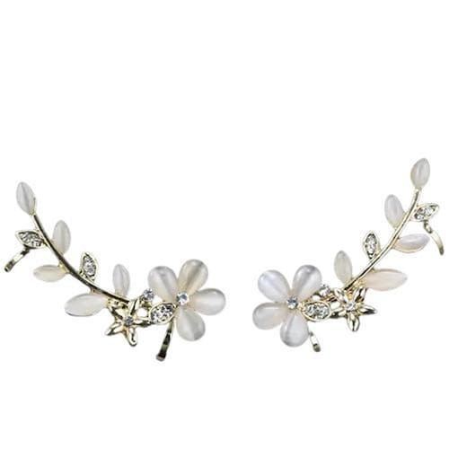 Brinco dourado clipe flores delicado strass
