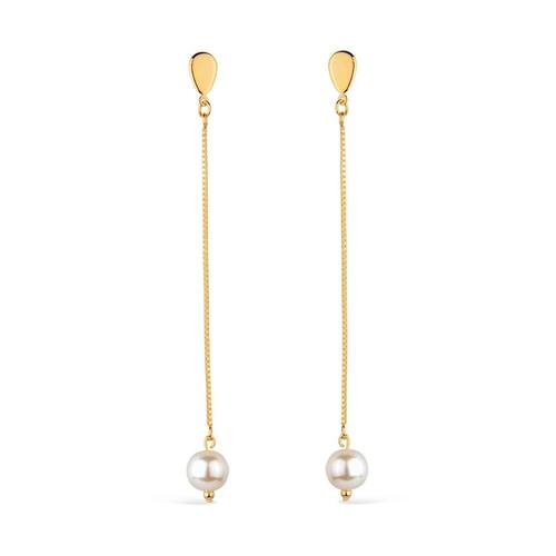 Brinco Dourado De Corrente Com Pérola