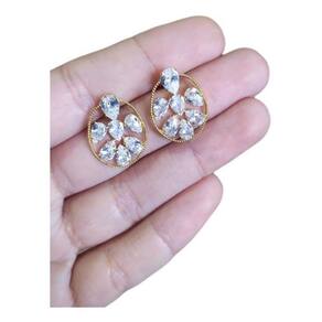 Brinco banhado a ouro 18k com pedras de zircônia. 2,2 cm de comprimento. Ideal para noivas, madrinhas, debutantes, formaturas e festas em geral. Simplesmente LINDO Acompanha caixinha de presente. Marca: De Castro Joias Ean: 7898834258536