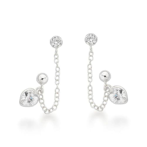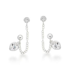 Brinco duplo com corrente e Coração Prata 925 -