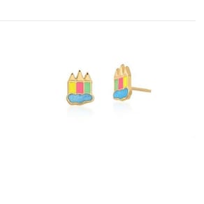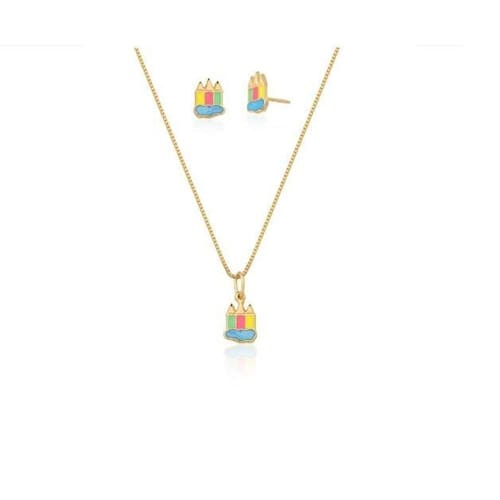 Conjunto de Colar e Brinco Infantil Pingente Castelo Banhado a Ouro. O Lúdico é sucesso com as crianças, pois mexe com a imaginação, sua pequena vai Arrasar