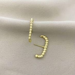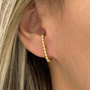Brinco Ear Hook Fio de Bolinhas Lisas Banhado a Ouro