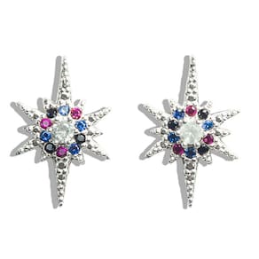 Apresentamos os Brincos de Estrela Meteoro de Zircônia Mista em Prata 925, uma verdadeira declaração de beleza e qualidade.