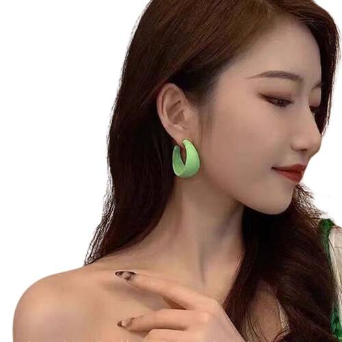 Brinco Feminino Argola Grande Verde Tendência Moderno