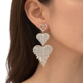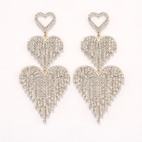 Brinco Feminino Coração Strass Longo Luxo Elegante é perfeito para quem busca um acessório marcante e cheio de brilho. Com design em formato de coração duplo e franjas delicadas em strass, ele cria um efeito glamouroso e sofisticado ao visual. Ideal para festas, eventos noturnos e ocasiões especiais, esse brinco valoriza o rosto e traz movimento com muito estilo. Uma peça impactante que transforma qualquer look e também é uma excelente opção de presente feminino.