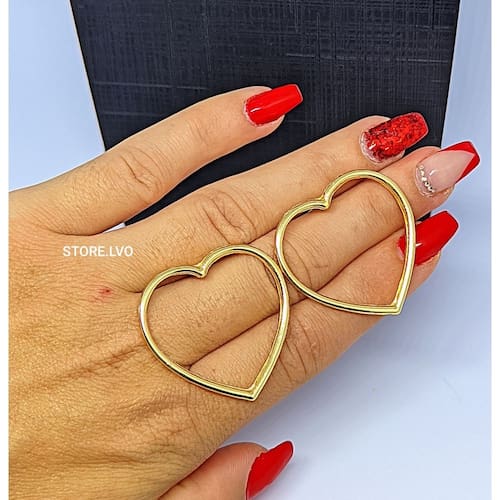 Brinco Feminino Coração Vazado Grande Folheado Ouro Dourado Par de Brincos Antialérgico Luxo Tendência - Cor: Prata