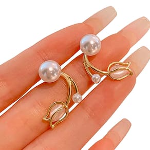 Descubra a elegância atemporal com este par de brincos exclusivos! Apresentando um design deslumbrante inspirado na natureza, esses brincos de tulipa em metal dourado são verdadeiramente únicos. Cada brinco é adornado com duas deslumbrantes pérolas: uma pérola central maior e uma pérola menor pendurada, adicionando um toque de movimento e sofisticação. Perfeito para ocasiões especiais ou para elevar seu visual diário, esses brincos são um acessório versátil que combina estilo e elegância. Adicione um toque de glamour e sofisticação à sua coleção de joias com este par de brincos deslumbrantes. Garanta o seu hoje e brilhe com estilo em qualquer lugar!