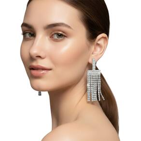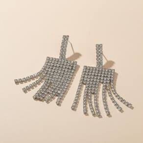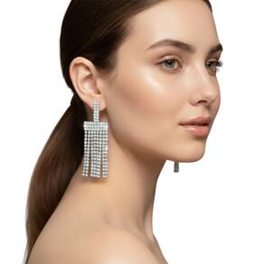 Eleve o seu look com o brilho sofisticado destes brincos de franja. Compostos por diversas fileiras de strass de alta qualidade, eles captam a luz a cada movimento, criando um efeito deslumbrante. O design pendente alonga a silhueta do rosto, oferecendo um visual moderno e extremamente elegante para ocasiões que pedem um toque extra de brilho.