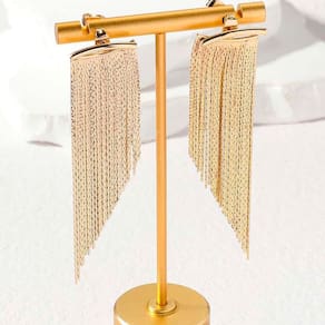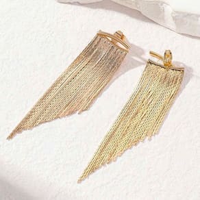 Adquira agora mesmo o brinco feminino longo com franjas de luxo e transforme-se em uma verdadeira diva da moda. Afinal, você merece brilhar como uma joia preciosa em todas as ocasiões.