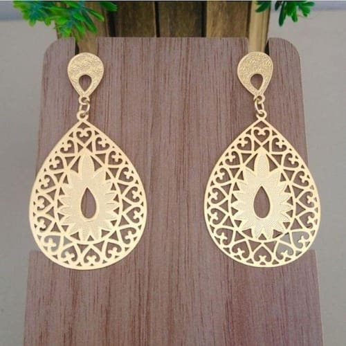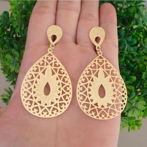 Brinco Feminino Longo Gota Vazada Com Detalhes Banhado A Ouro