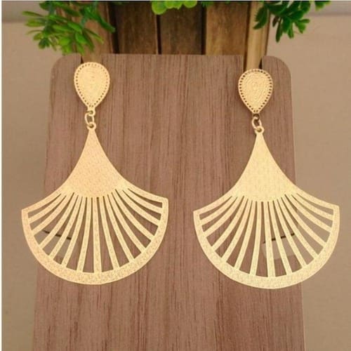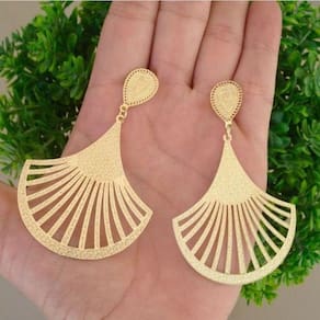 Brinco Feminino Longo Leque Vazado Com Detalhes Banhado