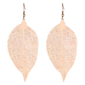 Um brinco delicado em forma de folha, meticulosamente trabalhado para capturar a textura e os detalhes naturais da folha. O design apresenta veias finas e curvas suaves que imitam a elegância e a simplicidade da natureza. A peça é banhada a ouro rosê, conferindo um brilho suave e sofisticado, que destaca os detalhes esculpidos.