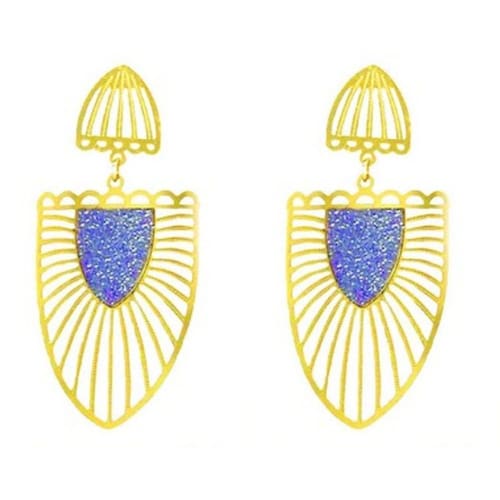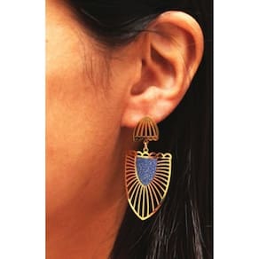 Brinco Folheado a Ouro 18k Glamour Brazão Com Brilho Safira