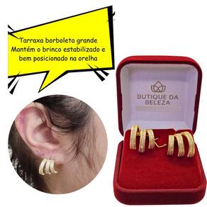 a tarraxa é do tipo borboleta grande, o que garante o máximo de ajuste e segurança até mesmo em orelhas onde os brincos costumam ficar caídos. Versátil, essa semijoia pode ser utilizada diariamente ou em ocasiões formais. Se você está em busca de um brinco arrojado e singular essa é a peça perfeita para você. A butique da beleza oferece semijoias exclusivas para os clientes mais exigentes. O que oferecemos um banho de ouro 18k, com qualidade , cor e tonalidade idênticas ao de uma peça de ouro 18k. Vendemos a experiência de você poder usar um produto arrojado, se sentir bela o e elevar sua autoestima. Embalagem caixa veludo de luxo foto do anúncio para você guardar sua semijoia e mantê-la brilhante por muito tempo. É bijuteria ou semijoia todas nossas peças são semijoias, ou seja a deposição de ouro sobre o metal pode ser até 250 vezes maior que a quantidade de ouro 18k depositada em uma peça de bijuteria. Portanto o que nós oferecemos é qualidade. É banhado ou folheado a ouro os dois termos significam a mesma coisa, referem-se ao processo de galvanoplastia onde o metal, nesse caso o ouro , é adicionado a peça, conferindo proteção, brilho e cor, sendo estas características gerais de uma semijoia de qualidade. As semijoias dão alergia não, nossos produtos são níquel free, cádmio free e cinza free, todos esses compostos químicos são alérgicos e estão fora de nosso processo de produção. Tem garantia sim , 6 meses mediante apresentação do certificado de garantia Marca: Butique Da Beleza