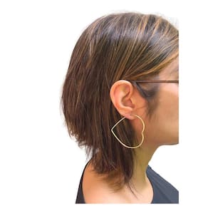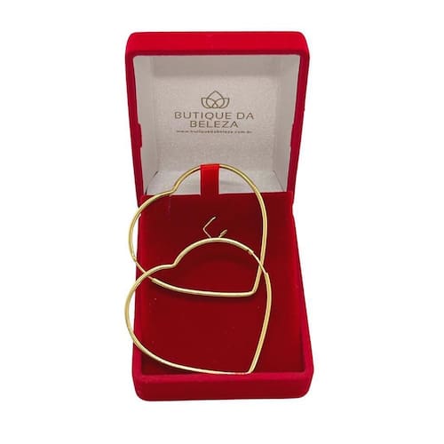 descrição do produto brinco banhado a ouro 18k argola coração torto grande