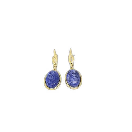 Brinco feminino com base folheado à ouro 18k dupla camada e banho anti-alérgico com pedra natural sodalita azul celeste , esse lindo brinco no formato redondo desenho moderno e arrojado com tamanho médio porém discreto, combinando com todos modelos de look desde casual ou rigor . O produto possui garantia de 6 meses para defeitos na fabricação. A garantia não cobre danos por má utilização, desgaste natural por tempo de utilização, ou danos na pedra, pois por se tratar de pedra natural em caso de queda pode ocasionar trincas ou mesmo quebra do mesmo. Ao utilizar perfumes atentar para não borrifar no acessório, pode ocasionar opacidade Medidas aproximadas do produto : Formato da pedra: triangular com contornos suaves e arrojados Comprimento base ate a pedra 5,5 cm Largura da pedra centro 2,5 cm Base folheado ouro 18 k e banho anti-alérgico Fecho: tipo pressão Tipo de pedra natural: sodalita azul celeste Utilização: trajes casual, fino Limpeza das semi-jóias: A limpeza das peças é algo bastante simples. Devem ser limpas com produtos de limpeza com ação desengordurante e devem ser enxaguadas em àgua corrente, de forma abundante. Para manutenção de peças lisas, use também uma flanela macia para fazer o polimento. Marca: Allipi