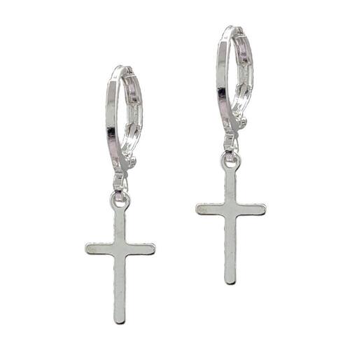 descrição do produto brinco folheado banhado a prata argolinha 2 partes com cruz pequena