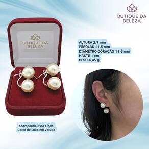 Brinco folheado a prata grace kelly pérolas 11,5mm semijoias em caixa de luxo especificações do produto altura 2,7cm pérolas 11,5mm haste 1cm peso 4. 45g
