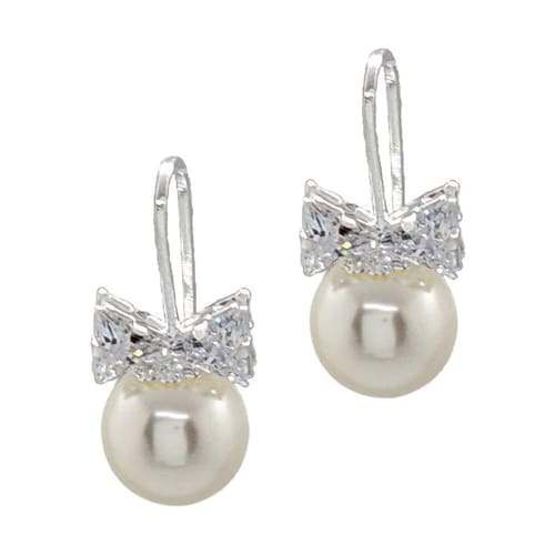 Brinco folheado a prata pérola lacinho gancho semijoias em