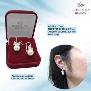 Brinco folheado a prata pérola lacinho gancho semijoias em caixa de luxo