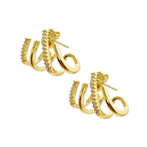 Brinco folheado a ouro 4 aros 2 com zircônias