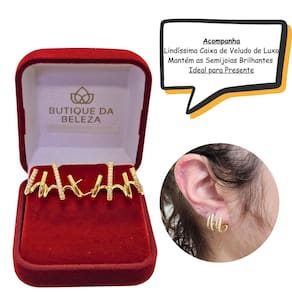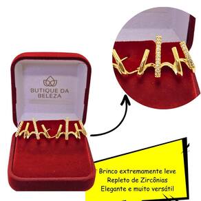 para quem deseja um perfeito encaixe na orelha sem perder o conforto, o brinco folheado a ouro 4 aros com zircônias é a peça ideal. Com seus aros incompletos, cria um efeito inusitado na orelha, como se fossem 4 brincos em vez de apenas 1. Além disso, preenche o lóbulo da orelha por completo, sem pesar. Seu encaixe e ajuste são excelentes, mantendo-se reta na orelha. Feito para expressar a sua originalidade, este brinco é uma sugestão perfeita para quem busca peças arrojadas e de qualidade. A butique da beleza oferece semijoias de excelência para os clientes mais exigentes. O brinco recebe um banho de ouro 18k, com qualidade, cor e tonalidade idênticas às de uma peça de ouro 18k. Oferecemos a experiência de você poder usar um produto arrojado, se sentir bela e elevar sua autoestima. Além disso, acompanha uma caixa de veludo de luxo para você guardar sua semijoia e mantê-la brilhante por muito tempo. Nossas peças são todas semijoias, o que significa que a deposição de ouro sobre o metal pode ser até 250 vezes maior do que a quantidade de ouro 18k depositada em uma peça de bijuteria. Portanto, oferecemos qualidade em cada detalhe. Quanto à alergia, pode ficar tranquilo a . Nossos produtos são níquel free, cádmio free e cinza free. Todos esses compostos químicos são alérgicos e estão fora de nosso processo de produção. E para sua tranquilidade, oferecemos garantia de 6 meses mediante a apresentação do certificado de garantia. Especificações do produto: - altura: 13. 5mm - comprimento: 14. 6mm - largura: 10mm - haste: 11mm - peso: 3. 14g Marca: Butique Da Beleza