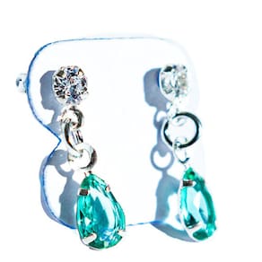 Brinco Gota Facetada Zircônia Água-Marinha Garra Prata 925