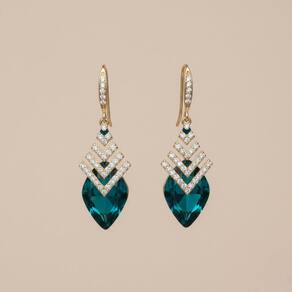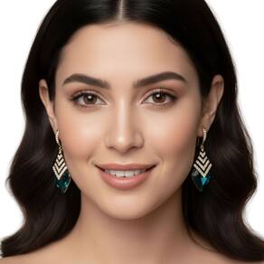 Detalhe Art Déco: Geometria moderna que valoriza e alonga o rosto.
