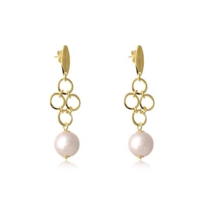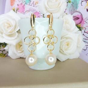 Brinco Grande De Fio Com Circulo Dourado E Pérola Folheado Em Ouro 18k [f027]