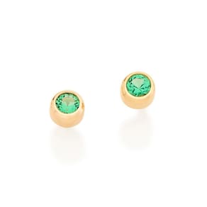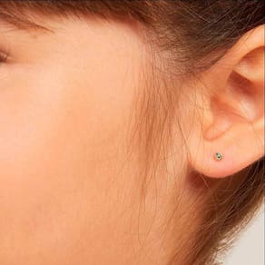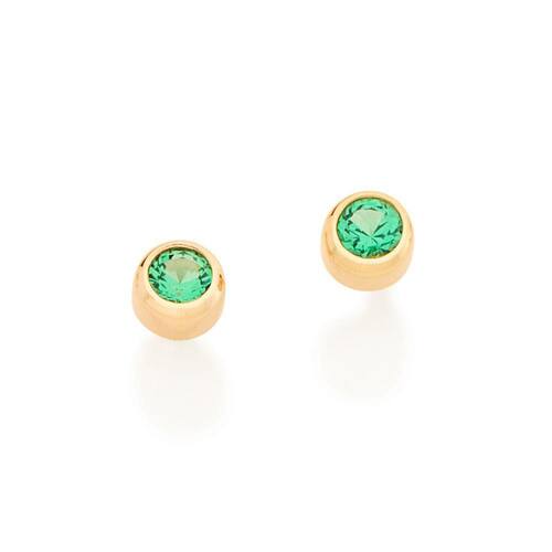 Brinco infantil solitário folheado a ouro com zircônia verde-Rommanel