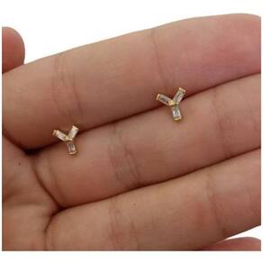 Brinco folheado a ouro 18k com pedra de zircônia. Valor para o par. 7 mm de comprimento Lindo para damas de honra, segundo furo ou para presentear. Marca: De Castro Joias Ean: 7897244560420