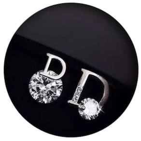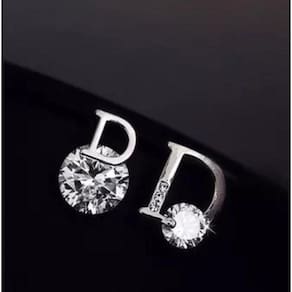 Brinco inicial letra d brilho strass detalhes prateado s8342