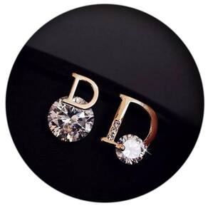 Brinco Inicial Letra D Brilho Strass Detalhes Rose R4385